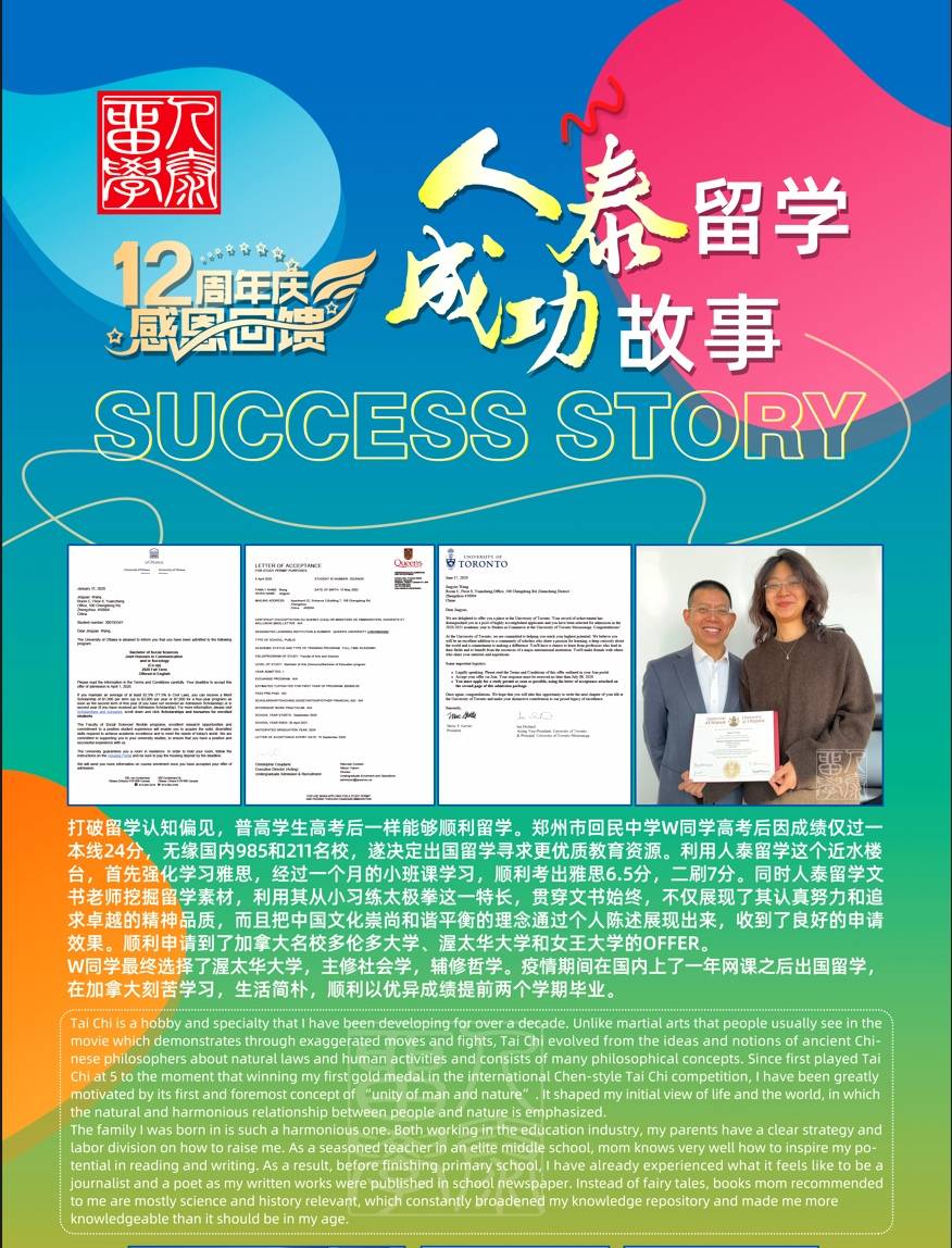 不同于很多年轻机构,人泰出国留学的核心优势,从创始人的创业经历就能体现出来。创始人王金宝,业内人都尊称一声宝叔,是一位在上世纪九十年代末就进入自费出国留学中介行业的老兵,到现在已经在行业深耕28年,始终扎根业务一线余名学子成功留学,连自己的独生女儿都送到加拿大攻读本科,用亲身经历印证了自己对留学行业的认可。宝叔常说处处留心皆学问,我把客人当亲人,从创业之初就坚持办实事、实事求是的初心,不追求盲目扩张规模,也不做铺天盖地的营销,只踏踏实实把每个学生的申请做好,这样的理念,也贯穿了人泰留学的整个服务过程。